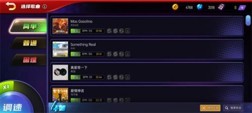 选好歌曲后,在开始游戏前,你可以在屏幕中间设置游戏里的一些效果。
