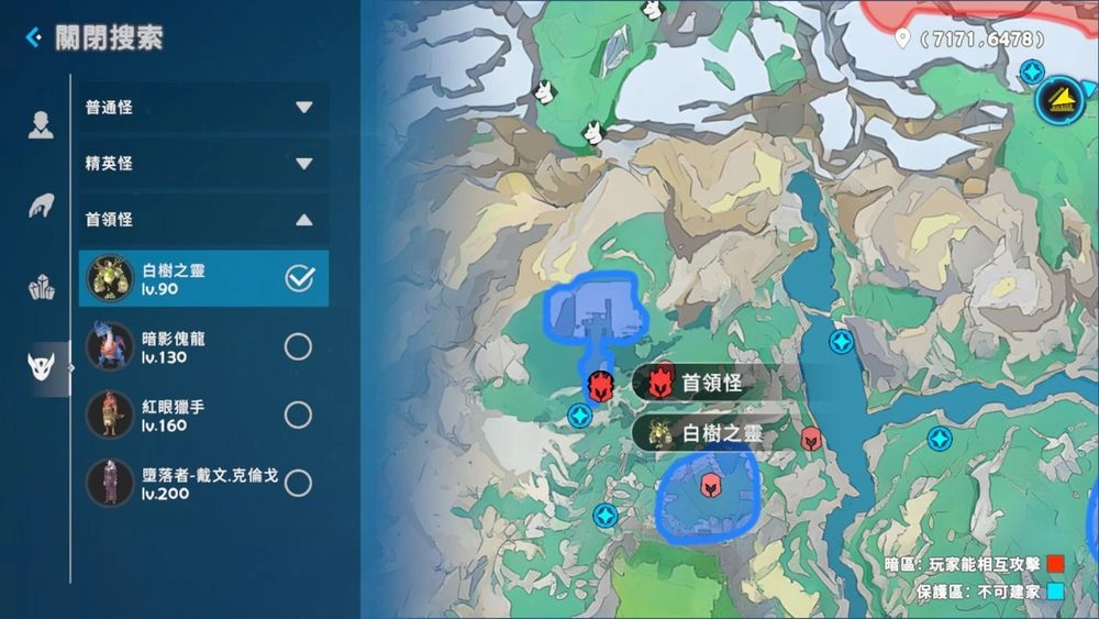 白树之灵位于这里的大平台上,每半天会重生一次。运气不错的话能碰到它,也可以通过家园圈的伙伴们通风报信来获取消息。