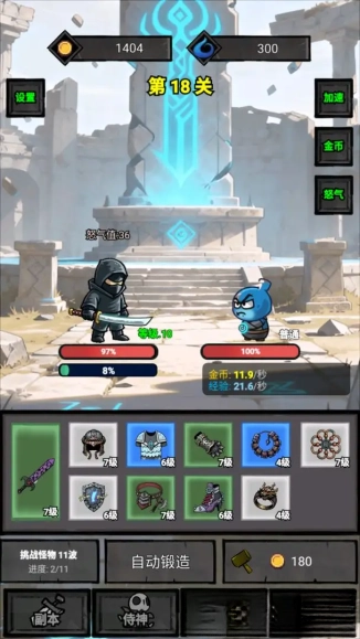 玩家能够利用大量金币以及副本掉落的材料,在铁匠铺进行装备打造。装备的词条是完全随机生成的,但可以借助重铸系统,消耗特定资源锁定1到2条想要的属性,之后重新随机剩余词条,以此实现一定程度的定制化效果。高阶装备具备独特的套装效果,激活后不仅能改变侍神的技能形态,还能提供全局增益,比如矿场产出增加20%,这一设定鼓励玩家围绕特定侍神来构建专属的装备流派。