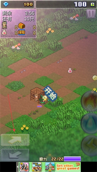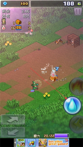点击右下角的魔法属性,可调整角色的攻击魔法方式,被击败的怪物会掉落宝箱、经验等物资。