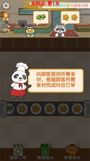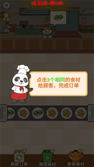 玩家需要点击3个相同的食材给顾客,完成订单