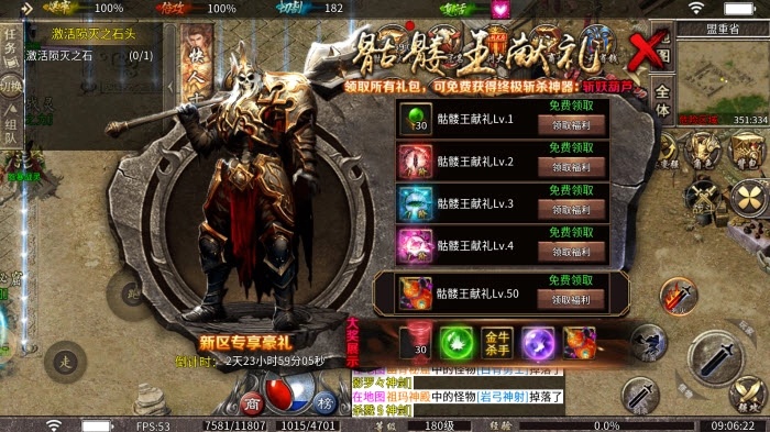 想快速提升发育进度的玩家,强烈推荐入手骷髅王献礼,这里面包含了大量实用的材料与道具;等把骷髅王献礼里的所有礼包都领取完毕,还能解锁强力的斩杀神器——《斩妖葫芦》(ps:这款神器是可以免费获取的),有了它就能更轻松地挑战各类BOSS了。