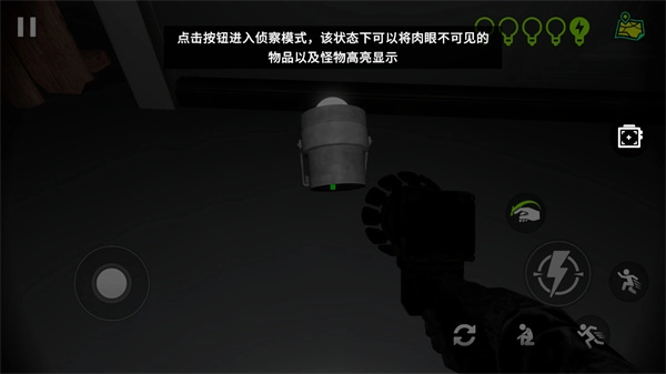 点击按钮即可进入侦察模式,在这个模式下,肉眼无法看见的物品和怪物都会被显示出来,同时也能直接退出该模式。