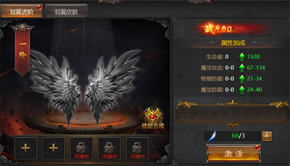 羽翼皮肤系统中,玩家能够收集皮肤碎片,以此激活对应的羽翼皮肤。一旦激活成功,就能获取相应的属性加成。而当获得相同的碎片时,则可以对同部位的碎片属性进行升级。