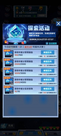 然后按照提示挂着机玩上几分钟,积累到一定数量的宝石之后。