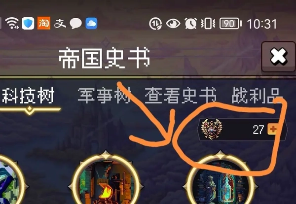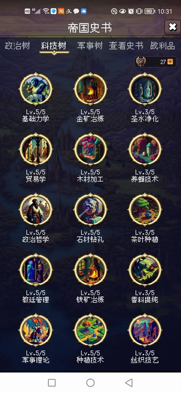 现在我们已经积累了不少荣誉,在科技界面里,尽量把第二列的科技树都点满。