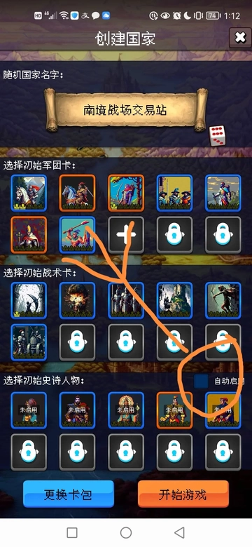现在我们马上要开始对局了,在新游戏启动之前,找到选择史诗人物的那一项,把“自动启用”这个选项关掉。这样一来,史诗人物就不会在开局时自动被使用,我们就能在对应的事件或者政策开启之前,自己手动挑选并启用合适的人物,以此来达到相关的属性要求。