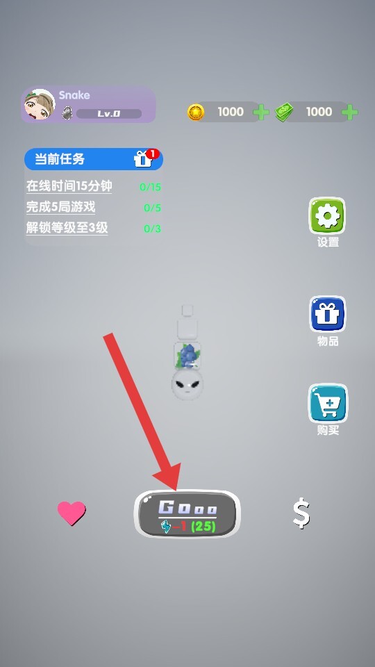 1、进入游戏界面后,找到【红箭头】指向的【Gooo】按钮并点击,即可启动游戏。