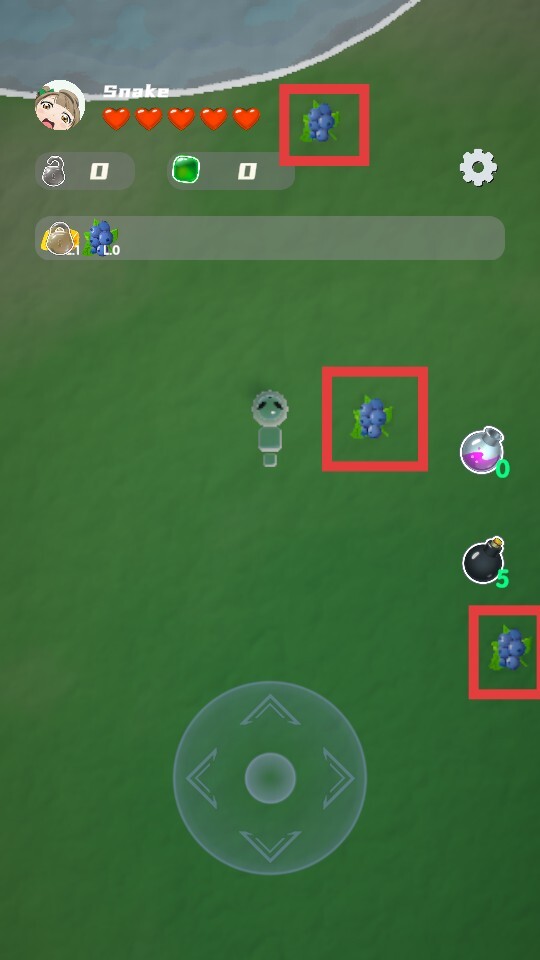 2、在游戏场景里,控制贪吃蛇移动,吃掉红框内的【蓝莓】之类的食物,以此让自身长度得到增加。