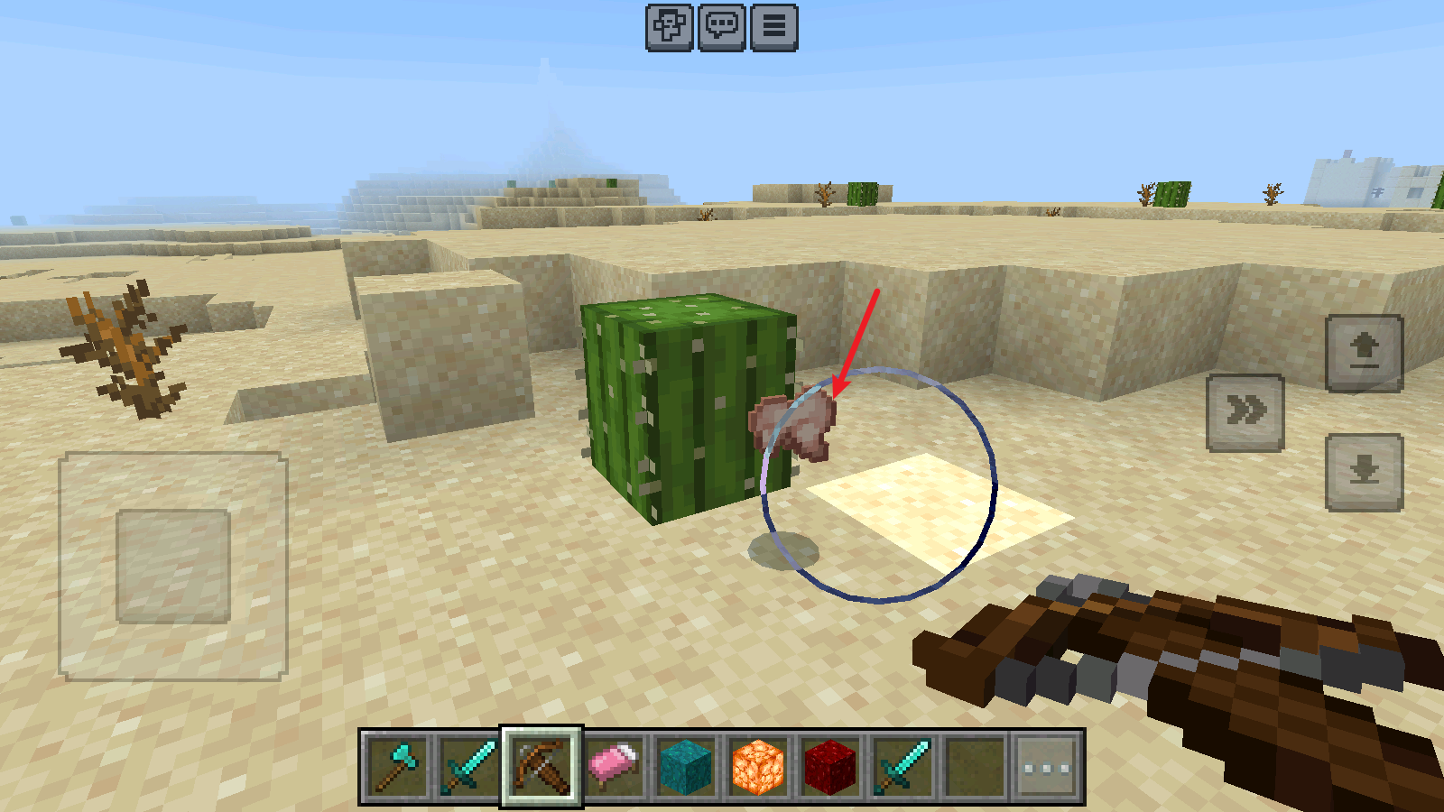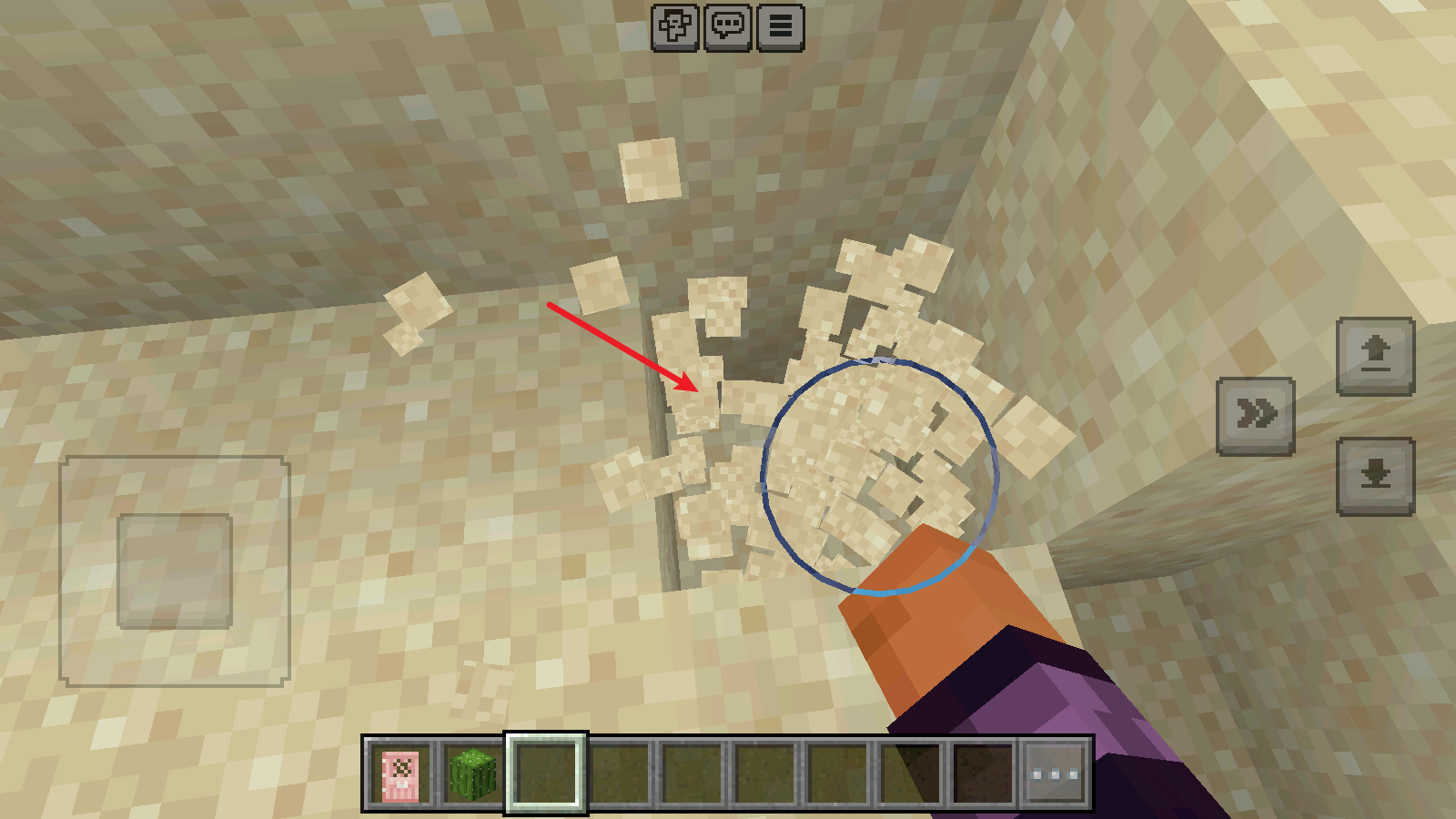 4、将工具对准方块,持续点击就能进行挖掘操作,从而获取各类资源。