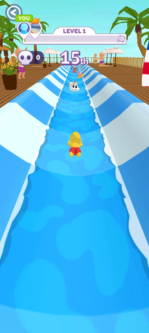 水上乐园大作战是一款充满趣味的休闲益智游戏,玩家可以和好友一起开启一场刺激的水上滑行冒险之旅。游戏操作十分简单,只需用手指在屏幕上滑动,就能操控角色左右移动。就算不小心滑出赛道也不会马上被淘汰,不过会受到短暂的时间惩罚,你是否能在这支欢乐的小队里崭露头角,成为最后的赢家呢?