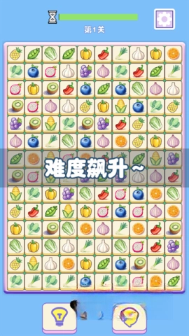 2、游戏还设置了多个关卡,难度逐步提高,蔬菜图案的种类和排列方式会不断出现变化,持续考验你的智力。
