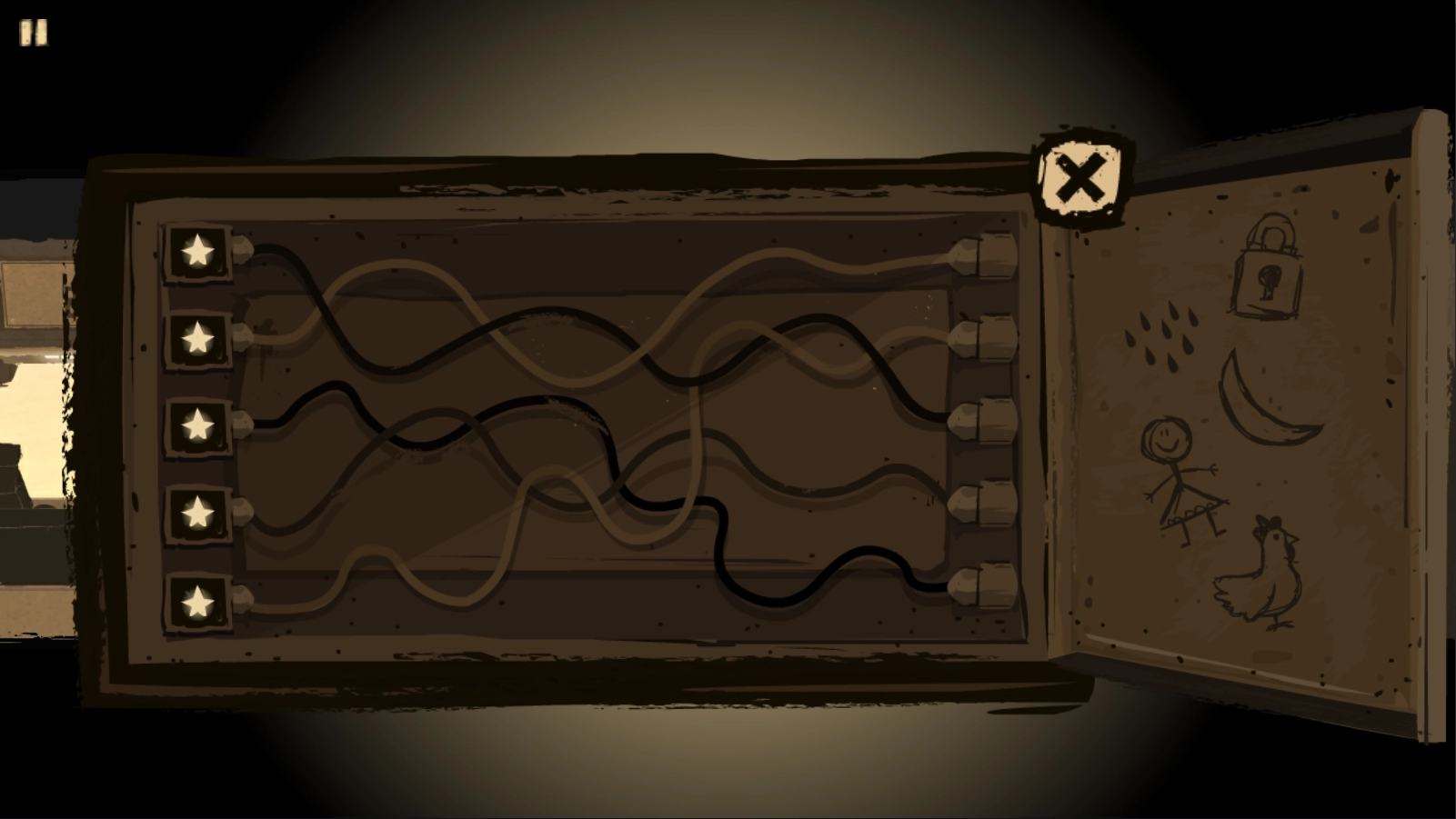 6、来到树人场景后,点击门即可开启连线谜题。其中白色点需要经过两次,其他的点则只能经过一次。完成谜题解答后,就能获得玩偶。