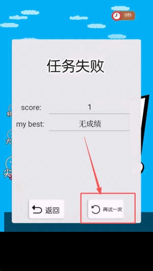 4、最后,要是任务没完成,点击“再试一次”按钮重新开启游戏。