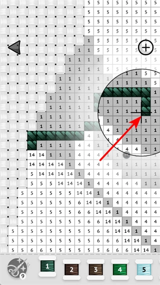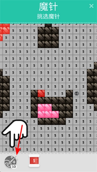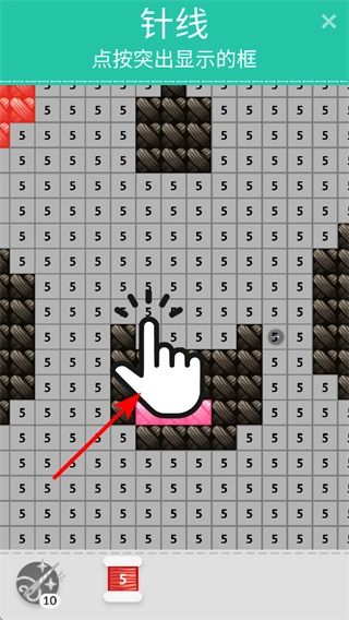 1、在游戏里,点击那些被标亮的方框来完成针线填充,这是绘制像素画的基础步骤,通过一步步把图案区域填好,就能让创作不断往前推进。