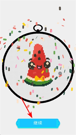 3、图案绘制完成后,点击“继续”按钮是进入下一个创作任务的关键步骤,点击该按钮即可开启新的像素画挑战。