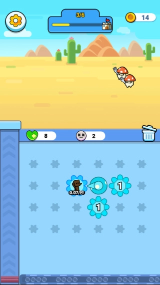 1、进入游戏后先选好适合自己的难度,然后把齿轮放到指定位置,齿轮会不断生产士兵,派他们去和各种敌人战斗。