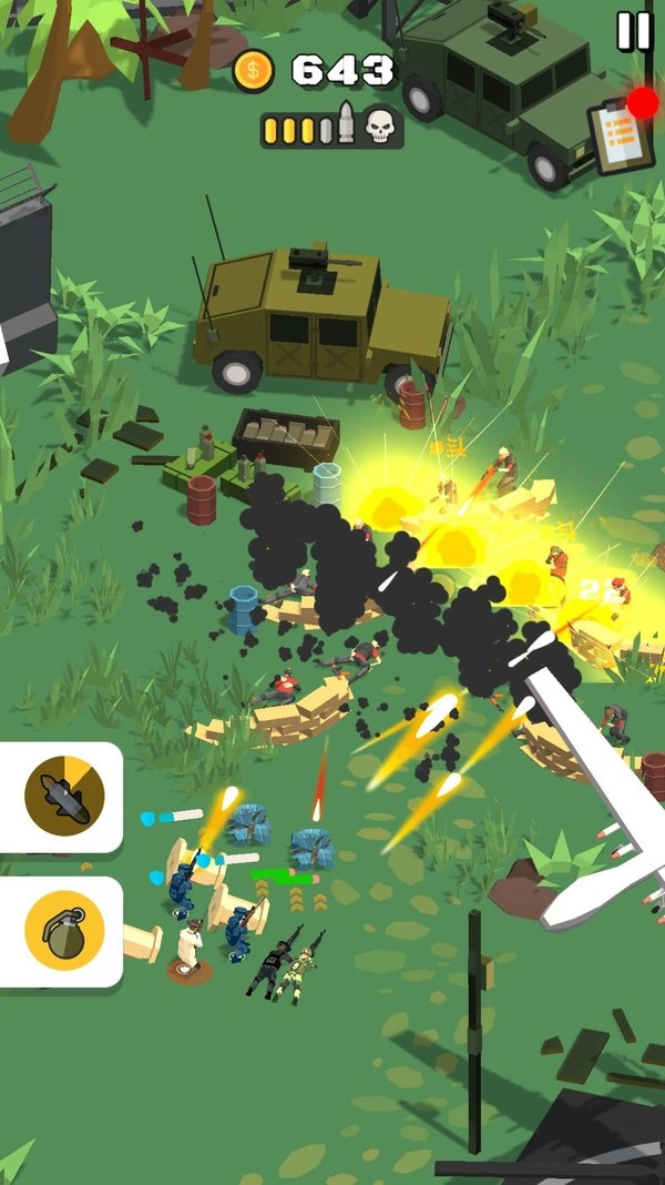 《指挥官行动》是一款十分有趣的射击闯关类游戏。游戏的每一个大关卡都包含多轮小关卡,玩家需要指挥自己的军队去歼灭所有敌人。在此过程中,要留意军队的伤亡情况,力求以最低的伤亡代价完成关卡挑战——一旦军队人数消耗殆尽,闯关就会失败。感兴趣的小伙伴们,快来体验吧!