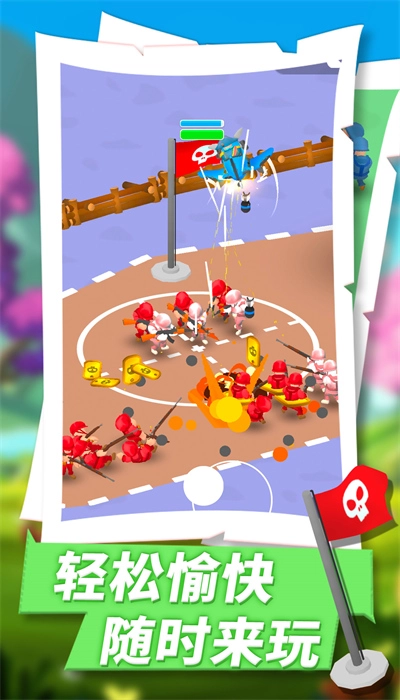 收集并升级橡皮人士兵,组建起强大的作战团队,通过合理分配资源来打造专属的阵容;