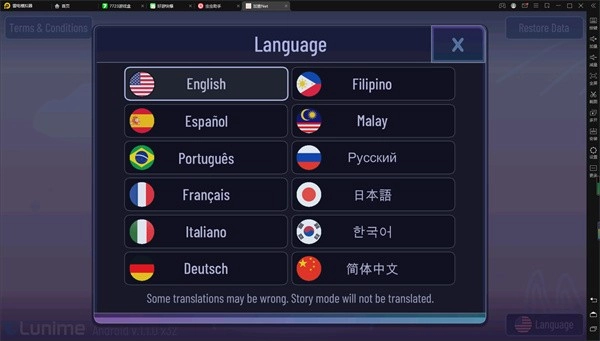 启动加查net这款游戏后,找到界面右下角的语言设置按钮并点击。