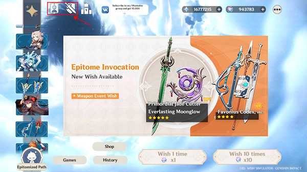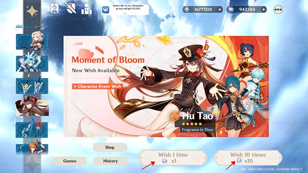 打开原神愿望模拟器中文版,进入游戏主界面后,你会发现这款游戏模拟了原神中的单抽与十连这两种抽卡模式。