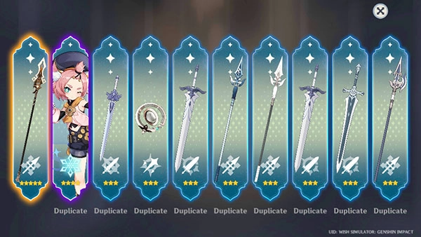 这就是你抽取到的所有卡片,来试试运气吧,以上就是原神祈愿模拟器中文版的玩法。