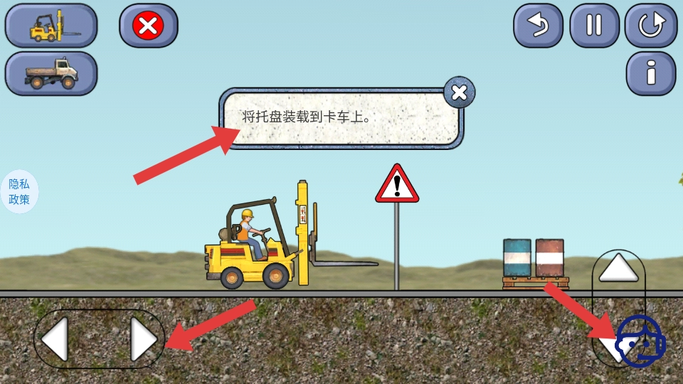 启动游戏后,留意到系统提示需将托盘放置于货车上。于是操作叉车开始移动,着手准备搬运托盘,正式开启货物运输的任务流程。