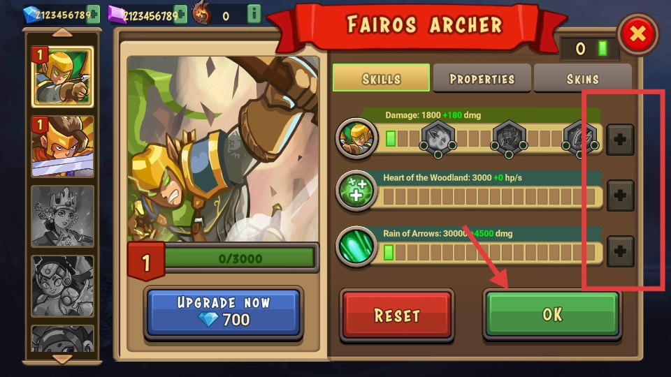 打开英雄界面后,能浏览不同职业角色的能力详情与基础数值,调整其技能搭配后点击确认键生效,还可通过消耗特定货币来强化角色以增强整体实力。