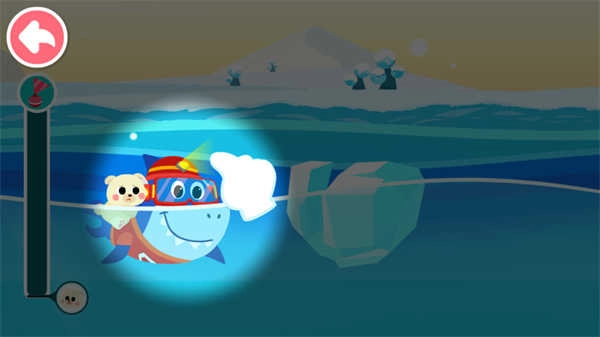 一只小北极熊独自漂在浮冰上,体力慢慢不支。快来帮鲨鱼爸爸进行救援:向上滑动让它跳过断裂的冰面,碰到挡路的海豹就赶紧下潜躲开。通过精准的操作,最终成功接回了小熊,让它和家人温馨团聚。