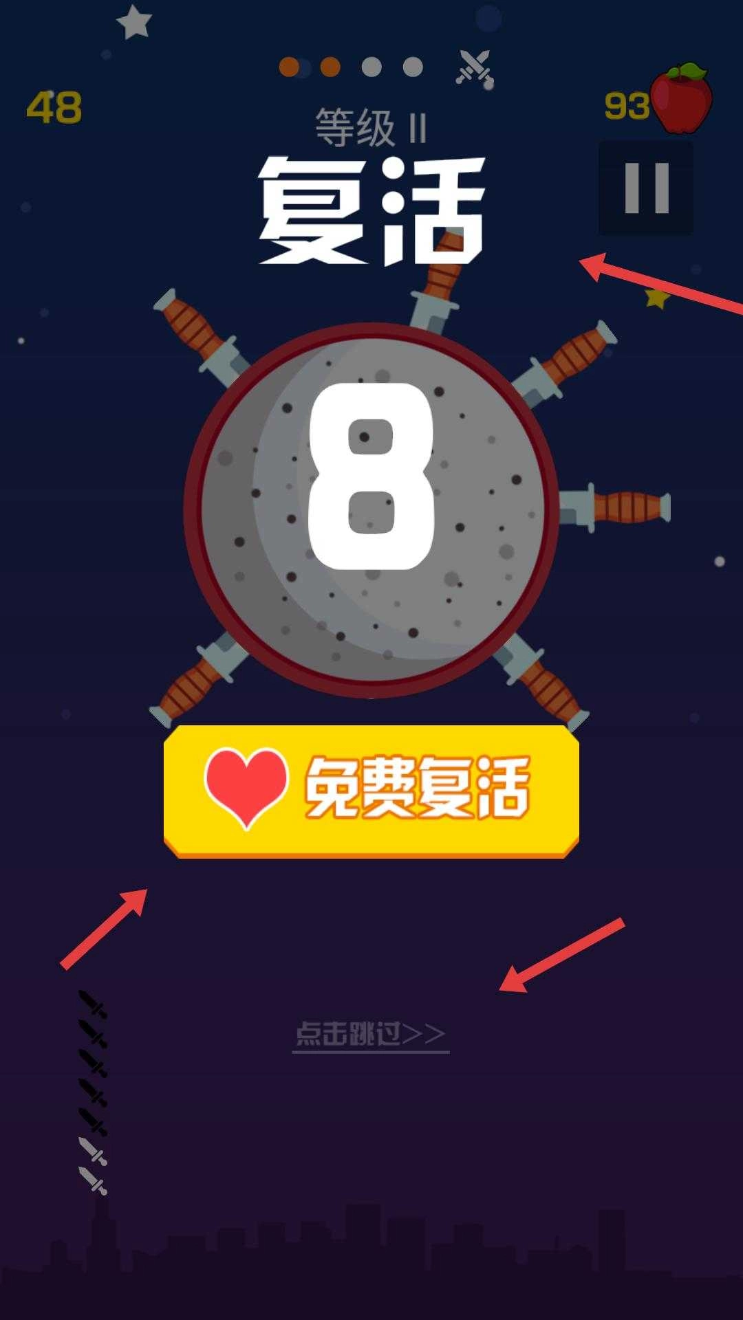 想要获得更高的分数,需要提高你飞刀的技巧;