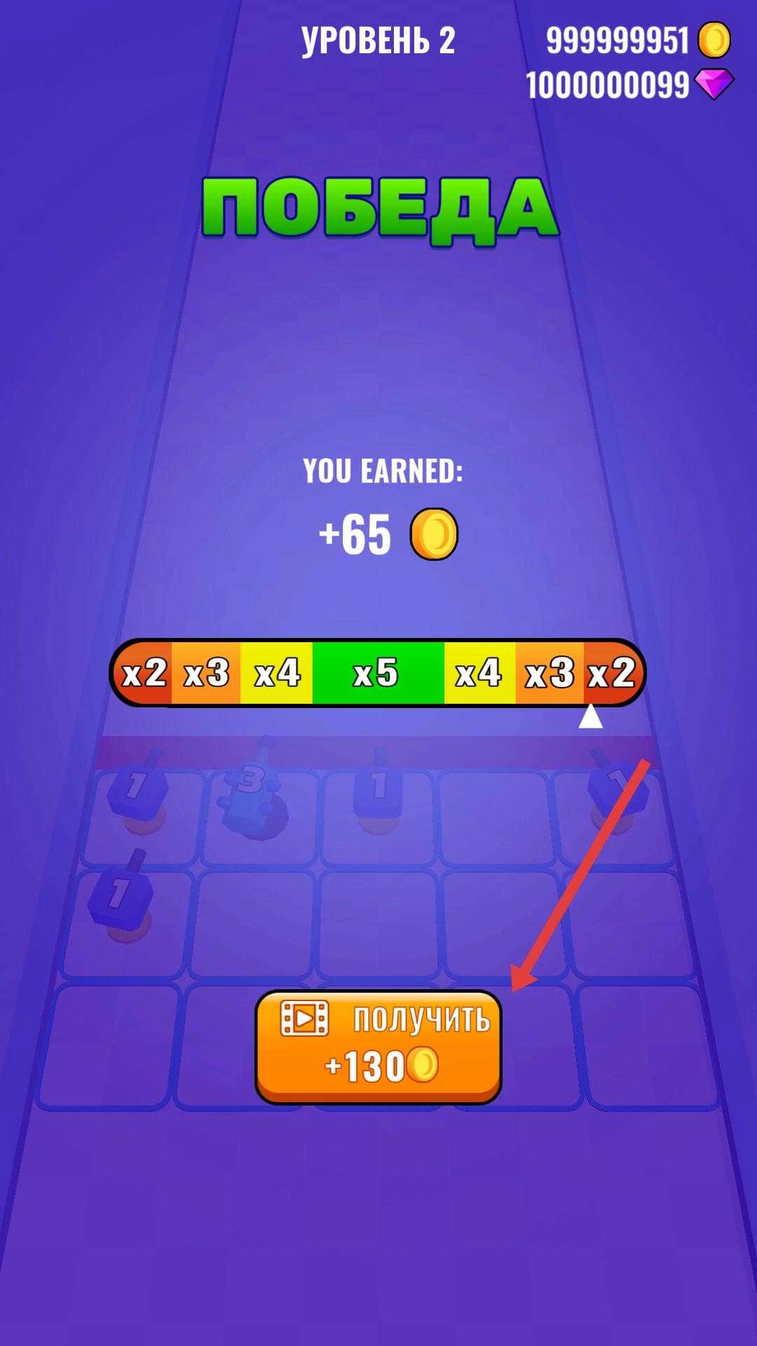 成功通过关卡后,不仅能得到金币奖励,还可以点击橙色按钮,通过观看视频来获取更多金币,从而为接下来的关卡储备资源。