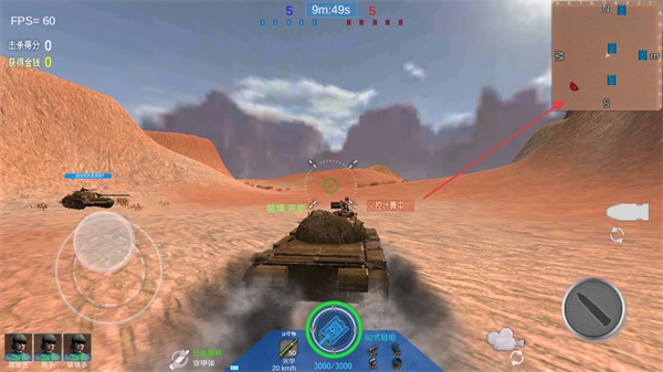 进入游戏后,可借助屏幕右上方的小地图来掌握战场的整体局势以及敌方坦克所在的位置。