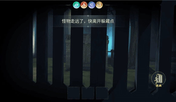 当怪物即将靠近时,要迅速躲进躲藏点;成功避开怪物后,找到传送门就能获得胜利。