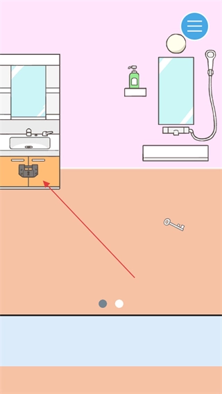 切换场景后,点击洗手台下方的柜子,查找里面可能藏有的道具。