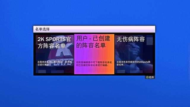此时会弹出名单选择界面,选择位于中间位置的“用户-已创建的阵容名单”选项,具体可参考下图: