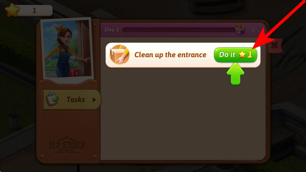 获得星星之后,就可以去查看家园改造的相关任务了,像清洁入口这类任务都包含在内。找到对应的任务后,点击相应的操作按钮,通过消耗星星就能推动改造任务向前进行。