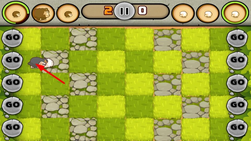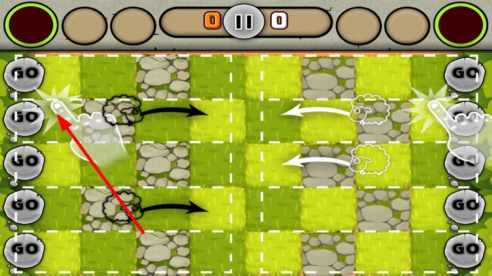 控制自己的动物单位去和敌方的羊单位接触,通过发起互动来推动游戏进展,要留意观察单位的移动路线,保证接触能够成功。