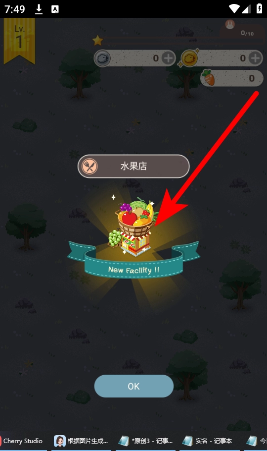 成功召唤后,新的设施会随之解锁,例如会出现标有New Facility的水果店,点击OK确认即可完成新设施的解锁,从而丰富游戏内的建筑内容。