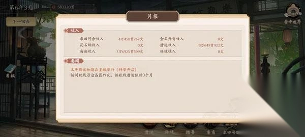 一直刷到关服,然后看看有没有地皮可买。最理想的配置是四个勾栏加一个质库,这样就能安心刷到下个月了。之后开启漕运,等漕运刷完,差不多就可以着手刷海运了。