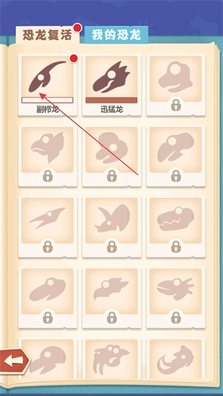 在图鉴的恐龙复活界面里,找到进度条已填满的恐龙图片并点击它。