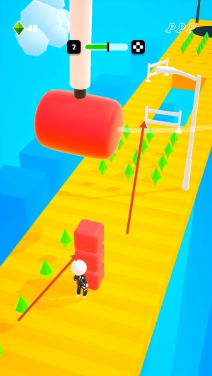 借助方块进行遮挡,避开大锤子的攻击,收集散落的钻石,达成第二关的通关目标。