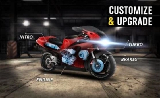 2.挑选出自己较为喜爱的摩托车,参与游戏里的竞速比赛挑战。