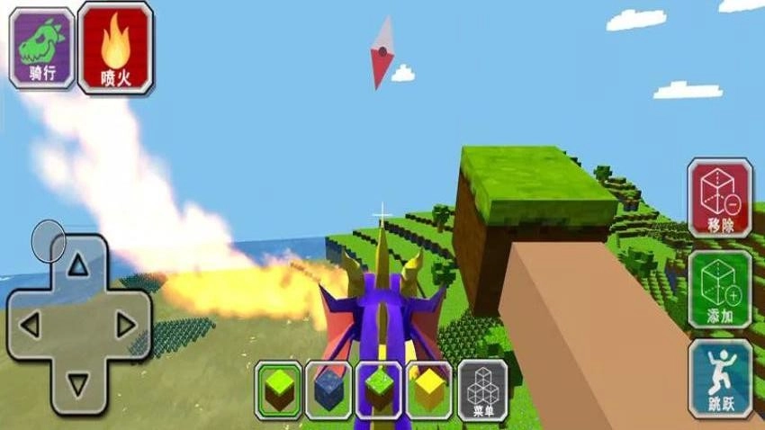 左下角的按钮用于操控角色移动,右下角的按钮则负责让人物放置方块。
