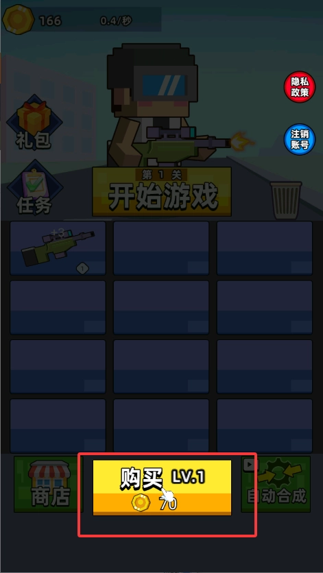 安装好游戏后打开,点击图示按钮购买枪械。