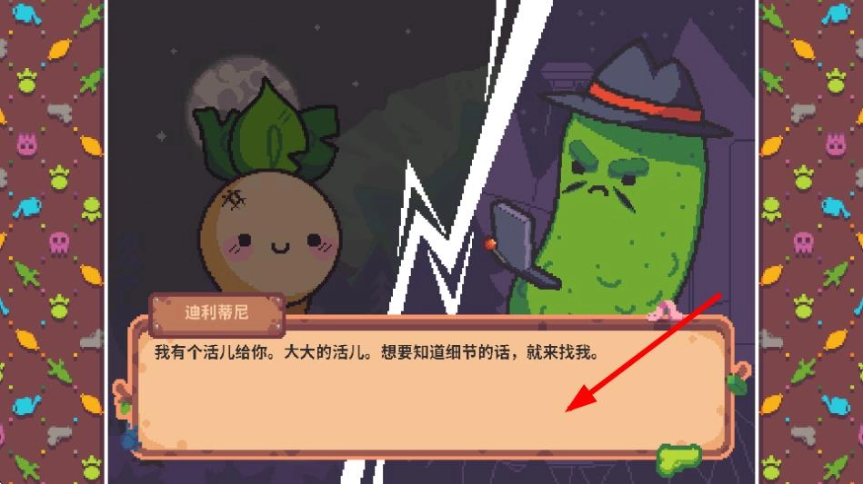 在像素风格的游戏里,角色迪利蒂尼会发布任务,他会这样对你说:“我这儿有个差事交给你,是个不小的活儿,要是想了解具体细节,就过来找我聊聊。”