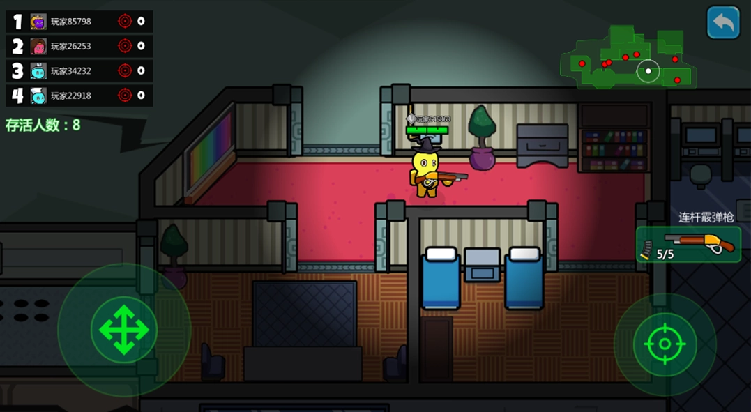 1、点击“开始战斗”进入对战场景,操控角色在战场中移动,使用武器攻击其他玩家,凭借灵活的操作淘汰对手,从而提升自己的存活排名。