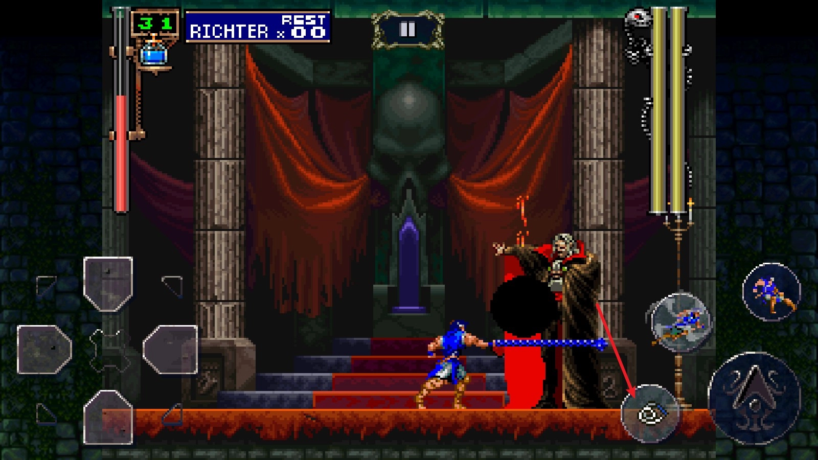 恶魔城月下夜想曲是一款像素风格冒险类动作闯关游戏,进入游戏玩家能够继续扮演主角里希特,把突破重重考验深入恶魔城,目的是为了消灭吸血鬼之王,玩家还可以操控全新角色吸血鬼伯爵阿鲁卡多,可以召唤各类使魔,随后搭配自身华丽的技能,打出可观的伤害,喜欢的朋友快来吧!