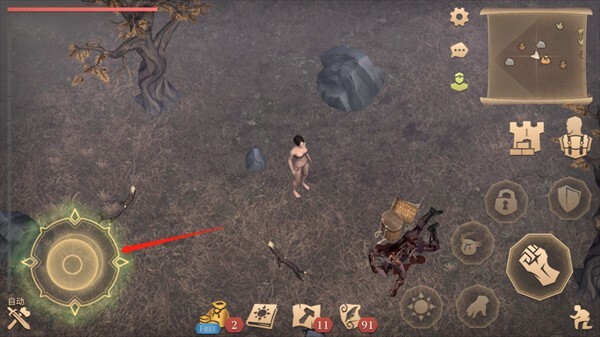 2、左侧的轮盘按钮可用于操控人物移动,游戏开始后请先完成新手任务。