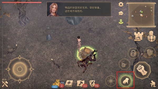 5、然后根据提示,走到下图这个位置,拾取装备;