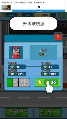 游戏正式开始后,点击左下角的速度提升按钮(×2),可以加快游戏进程也能提升你的利润;